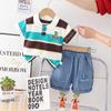 Комплект с короткими рукавами для мальчиков Детская полосатая рубашка-поло Повседневные джинсовые шорты Комплект из двух предметов с мультяшным принтом для мальчиков