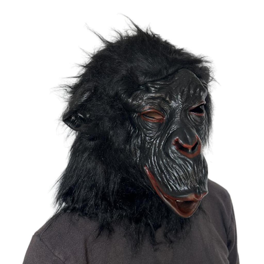 Маска из латекса обезьяны с красным ртом и черными волосами, для взрослых
