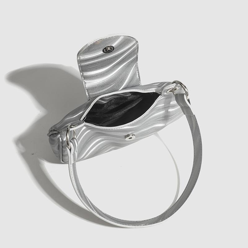 Оригинальная сумка шелковистая черная серебристая текстура подмышечная цепочка через плечо милая крутая ниша