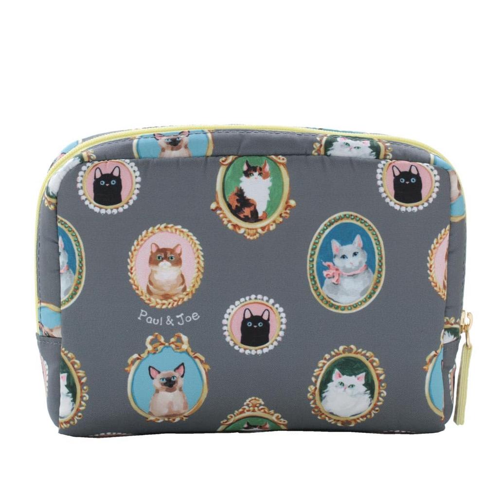 [Paul & Joe Pouch] Прочный мешочек с немного более толстым уретаном, зажатым между внешним материалом и подкладкой.. Его удобно держать, и он защищает содержимое внутри.. Искусство с изображением кота, символизирующего PAUL & JOR, выраженное в виде камеи. Просто смотреть на разных кошек уже весело. Желтая молния в сочетании с серым является акцентом.