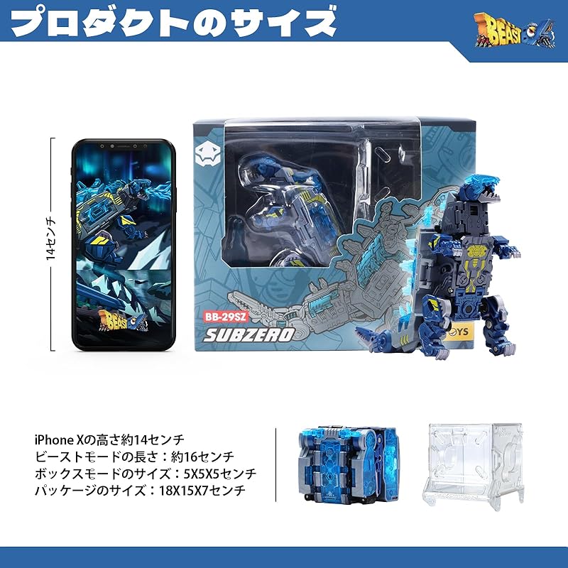 [Переключатель режима Beast Box] Изящный дизайн реализует таинственный процесс трансформации. Он не только может трансформироваться из куба в динозавра, но и имеет десятки подвижных соединений, что позволяет вам изменять различные позы с высокой мобильностью. Широкое использование прозрачных деталей для дополнительной роскоши! (Окрашен/батареи не требуются) Размер режима коробки: 5x5x5CM, размер режима Beast (развернутый): 16 см, Размер упаковки: 18x7x15СМ