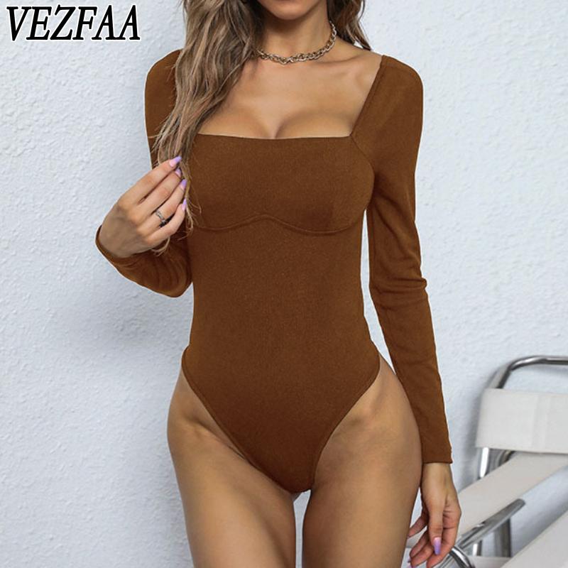 VEZFAA Женские модные повседневные боди с однотонным принтом весна-осень с длинным рукавом и квадратным воротником