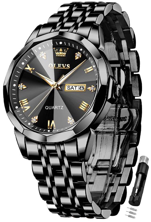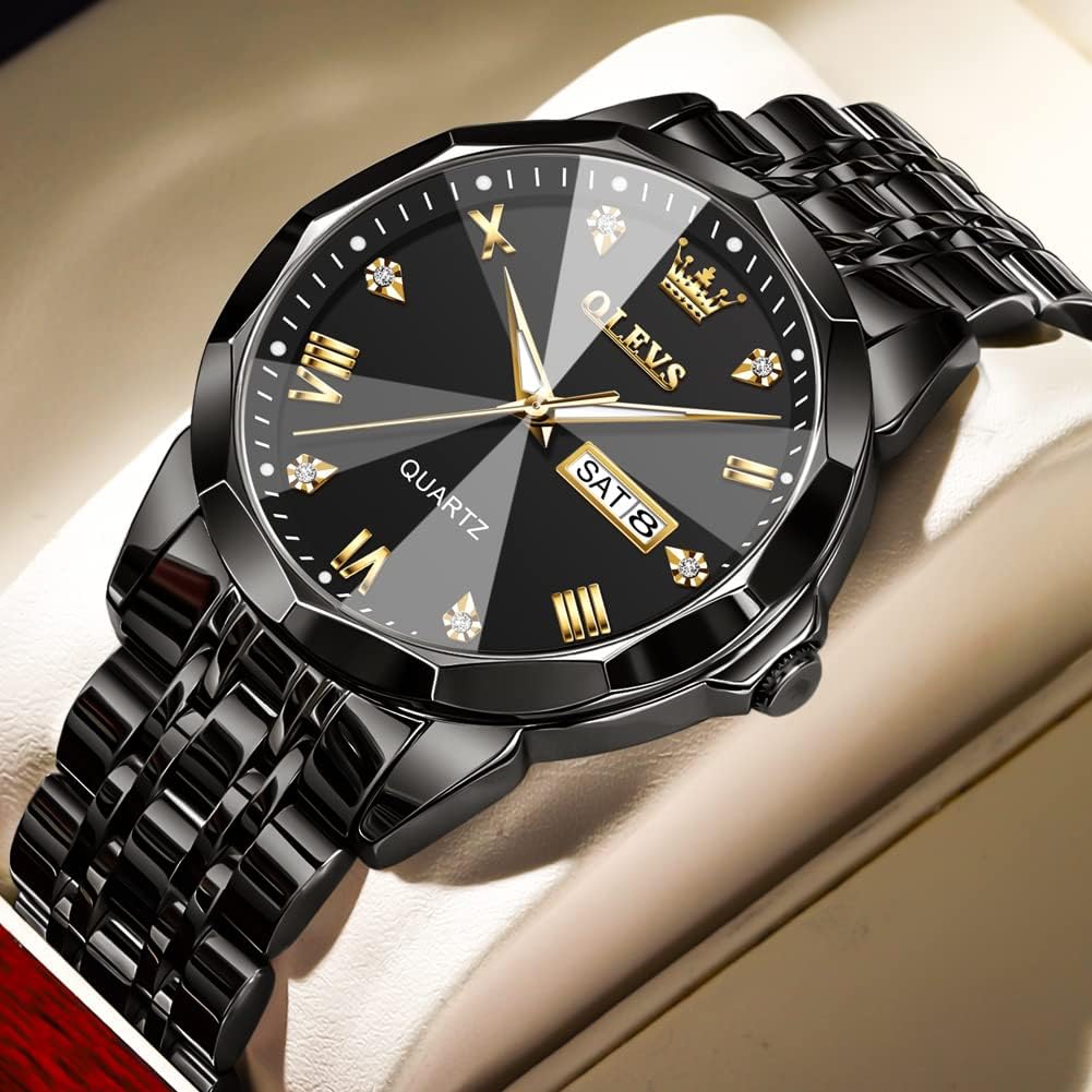 OLEVS Часы на руку с бриллиантами Стильные популярные кварцевые аналоговые деловые водонепроницаемые светящиеся часы для мужчин мужские (Черный-9931)