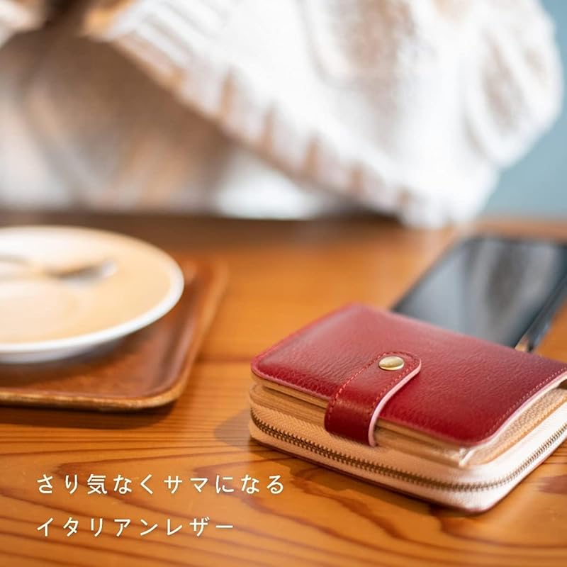 [Кошелек двойного сложения] "Милый и удобный кошелек из итальянской кожи". Удобный кошелек двойного сложения с круглой молнией. Клапан на застежке и круглая молния. Милый и функциональный кошелек. Он широко открывается, поэтому его легко видеть внутри, а также его легко класть и вынимать.. Несмотря на компактность, в открытом состоянии он имеет большую вместимость.. Этот кошелек надежнее, чем кажется.