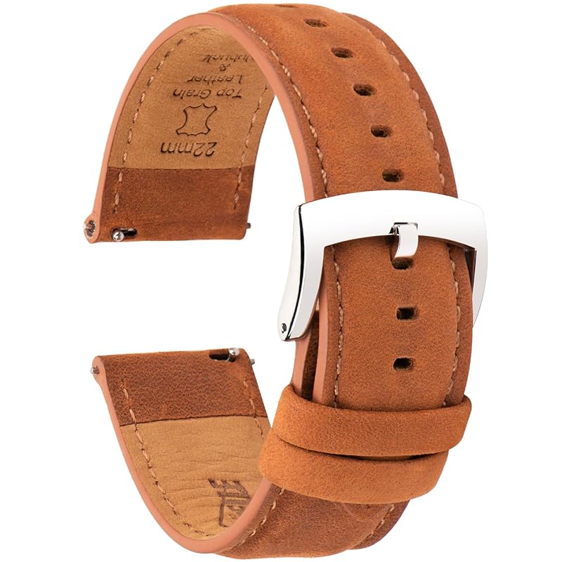 ВИНТАЖНЫЙ СТИЛЬ, кожа Crazy Horse и темный нубук: Лучшая кожа Crazy Horse тщательно отбирается и естественным образом трескается при сгибании. Со временем образуется естественная патина, и эти простые недостатки могут придать богатую текстуру любым часам. Темно-коричневая подкладка из нубука на нижней стороне чрезвычайно мягкая на ощупь и обеспечивает идеальный комфорт с минимальным скольжением. Такое сочетание создает элегантный классический стиль, который удобно носить на запястье.