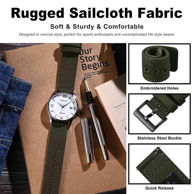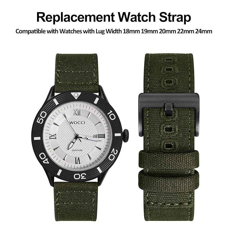 [WOCCI] ремень для часов из холста 22 мм ремешок для часов вышитый тканевый сменный ремешок для часов быстросъемная пряжка армейского зеленого/черного цвета
