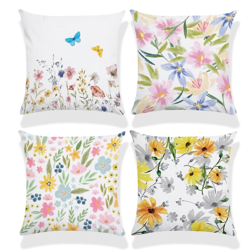 Чехол на подушку 18x18 с акварельными цветами и бабочками для декора фермерского дома весной/летом