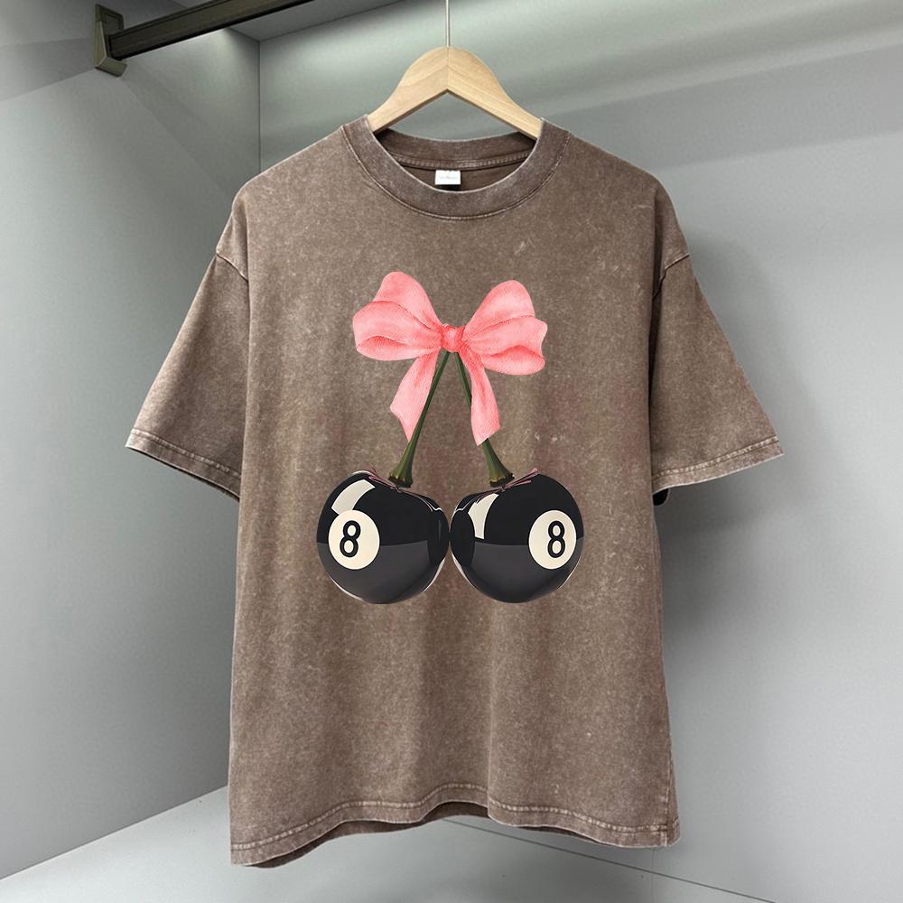 Розовый бант черный бильярд 8 вишен мужская одежда модная футболка футболка одежда дышащая хлопковая летняя футболка