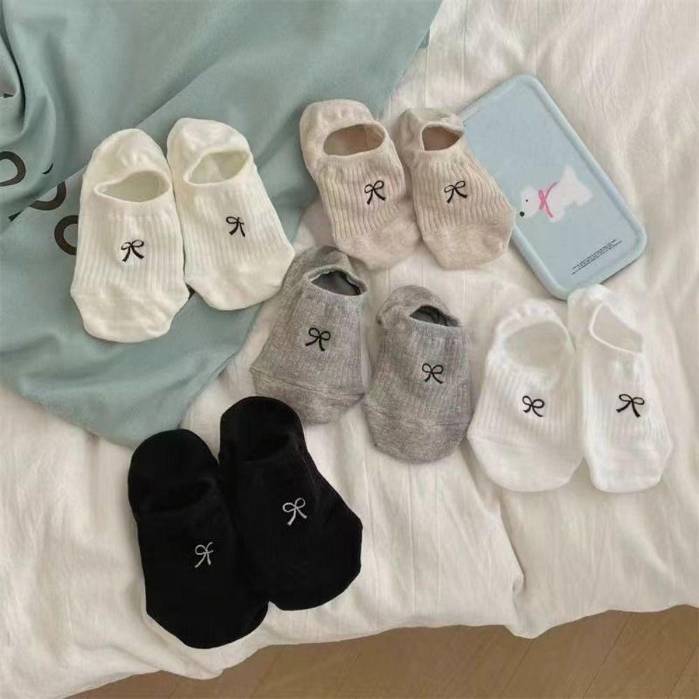 Однотонные носки с бантом, весна-лето, милые чулки, новые невидимые милые носки