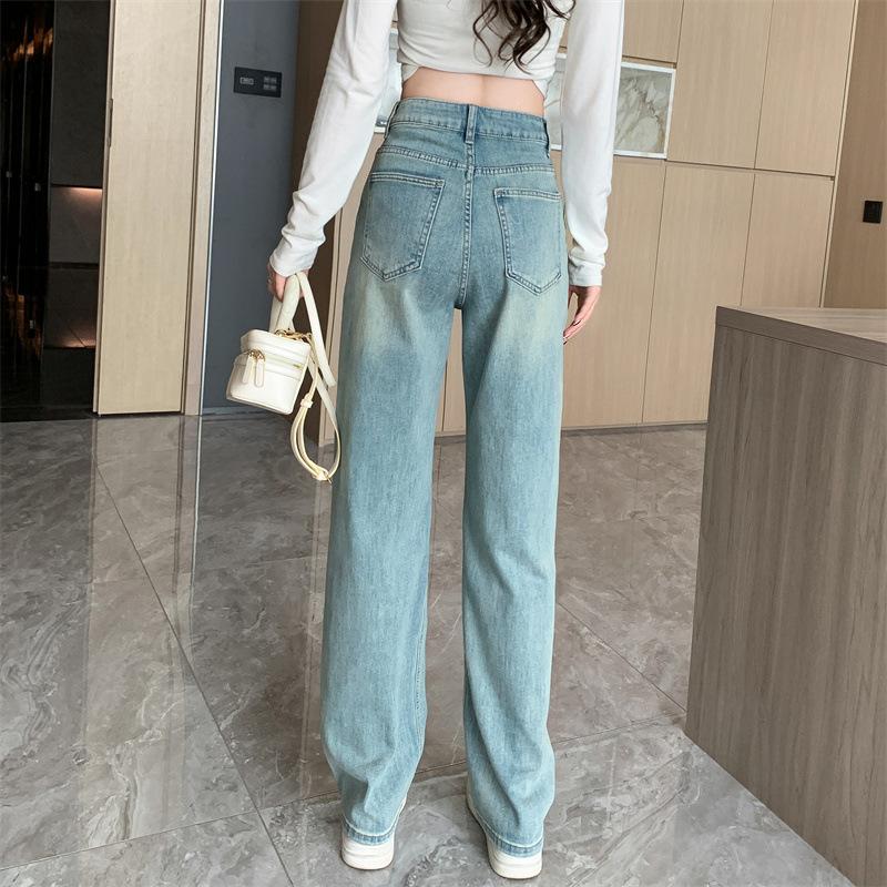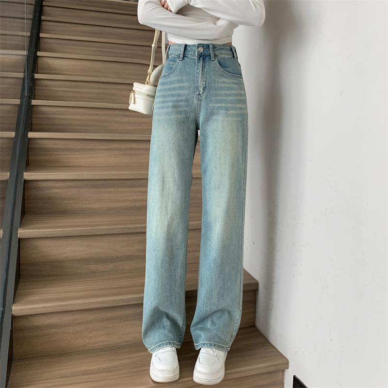 Светлые джинсы в стиле ретро с высокой талией, женские прямые и узкие широкие брюки в стиле хай-стрит