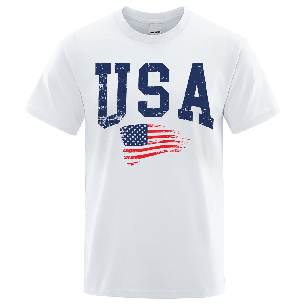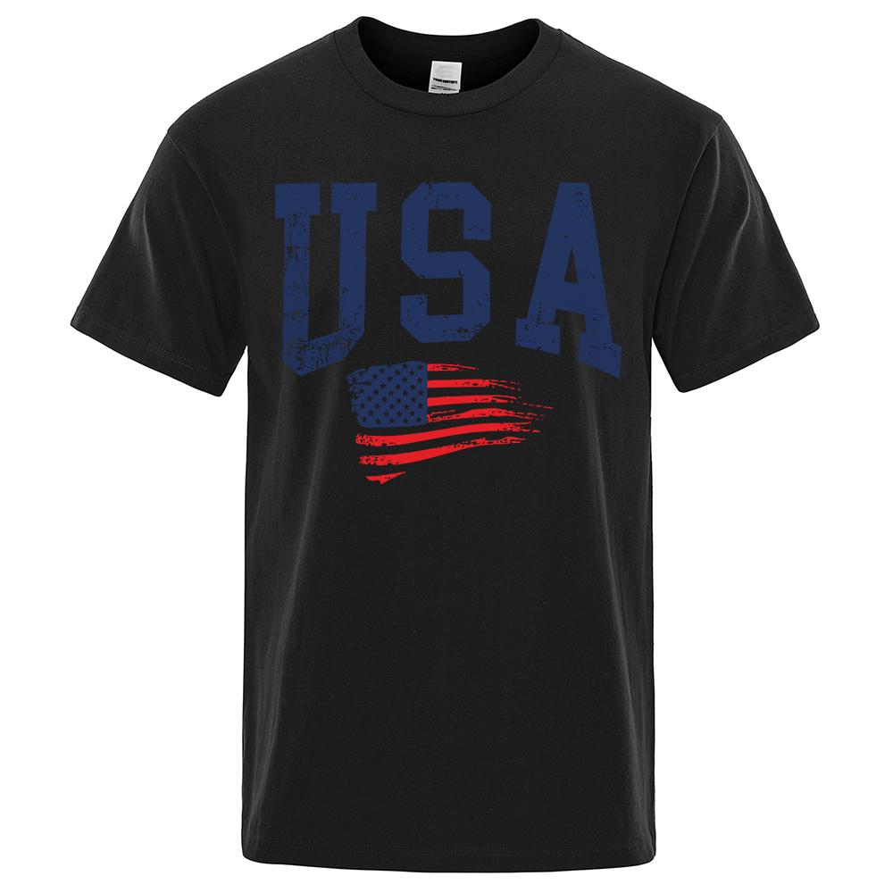 Футболки с надписью «USA Letter Flag Hip Hop Printed» для мужчин и женщин, одежда с круглым вырезом, свободная дышащая футболка, повседневная уличная футболка