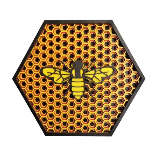 Уникальное ремесло: Этот деревянный знак «Пчела», выполненный в многослойном дизайне, демонстрирует потрясающую трехмерную форму пчелы.. Прозрачные слои и элегантная отделка создают визуально притягательное изделие, которое добавит очарования любому пространству.