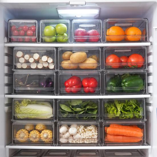 Этот контейнер для хранения, имеющий устойчивую конструкцию в виде ящика, обеспечивает удобный доступ к вашим продуктам и максимально эффективно использует пространство в холодильнике.