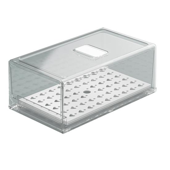 Благодаря красивому прозрачному внешнему виду и большой вместимости этот ящик для хранения обеспечивает прекрасный обзор своего содержимого и достаточно места для удобного размещения овощей, фруктов, яиц и многого другого.