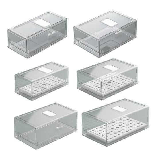 Прозрачная и просторная конструкция позволяет эффективно хранить различные продукты, такие как овощи, фрукты и яйца.. Это многофункциональное решение для хранения, доступное в трех размерах: модель A без сливного отверстия и модель B с сливным отверстием, идеально подходит для использования дома и на кухне.. Попрощайтесь с загроможденными холодильниками с этим практичным и стильным ящиком для хранения.