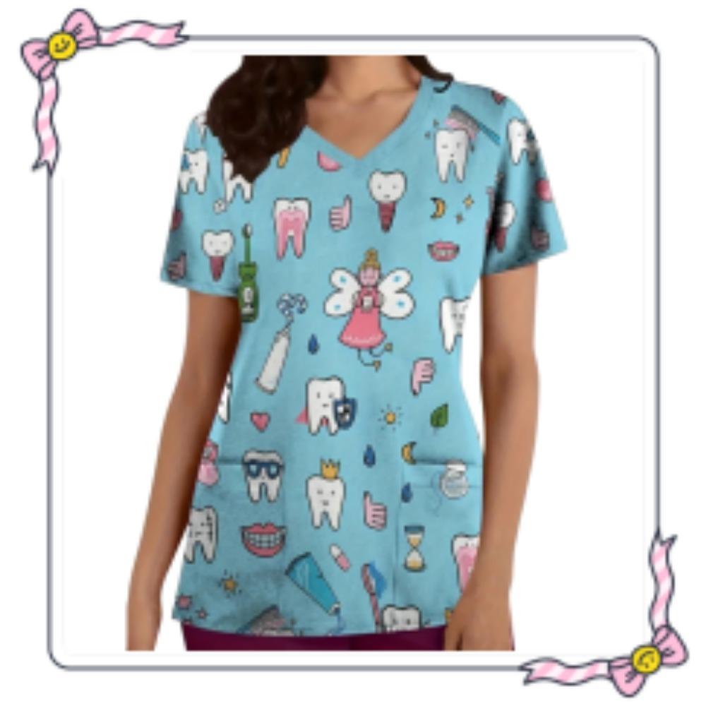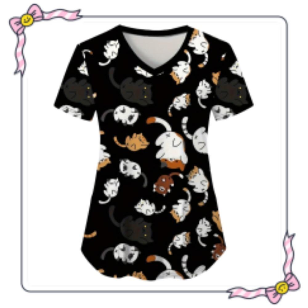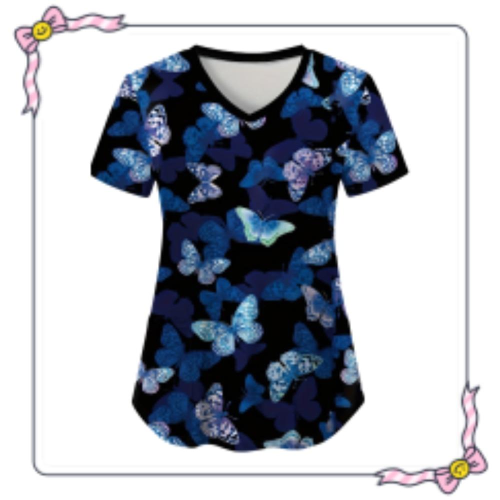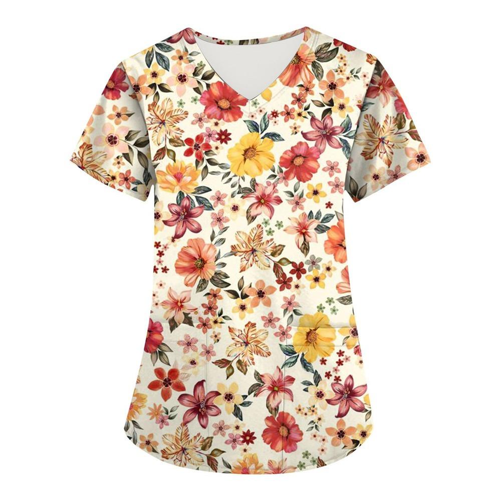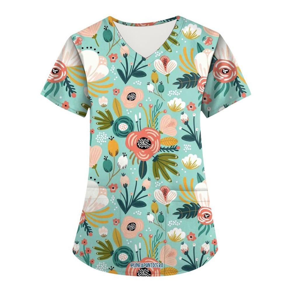 Женская униформа медсестры с цветочным 3D-принтом, топы с V-образным вырезом и карманом, медицинская униформа, футболка с коротким рукавом для медсестер, рабочая одежда