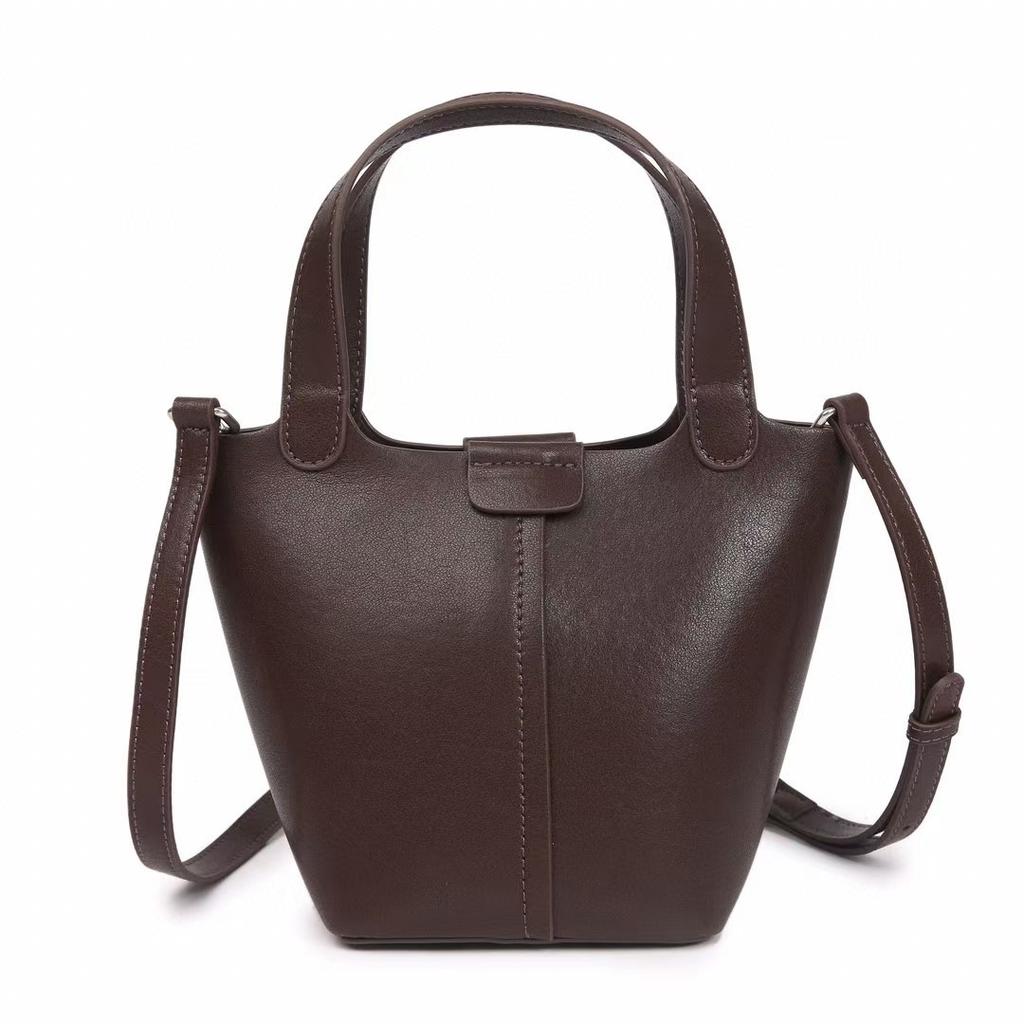 Сумка-корзина для овощей для женщин, новая сумка-ведро из натуральной кожи для поездок на работу, сумка-мешок из коровьей кожи с накладным верхом, сумка через плечо на одно плечо