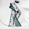 Маленький белый и нежно-зеленый шелковый шарф для женщин, тонкая лента, повязка на голову, резинка для волос, украшение для сумки, длинный