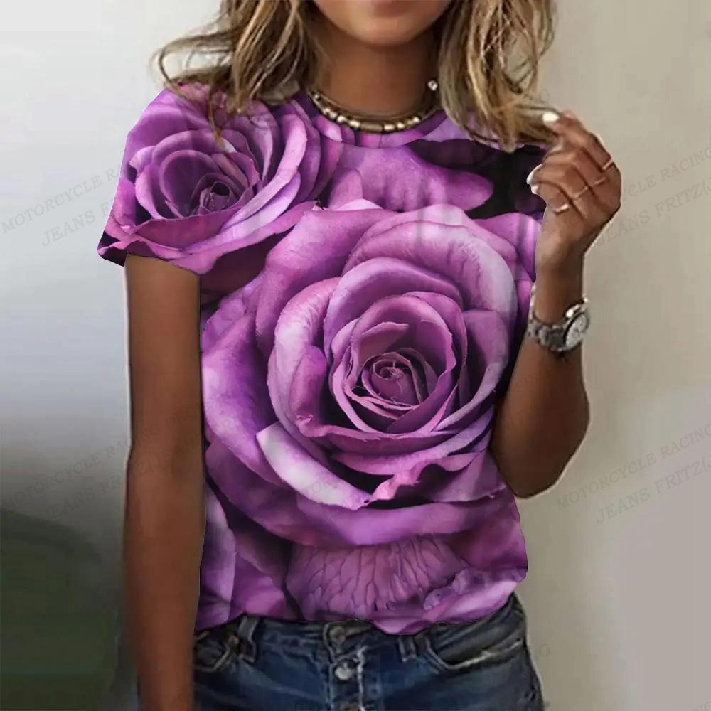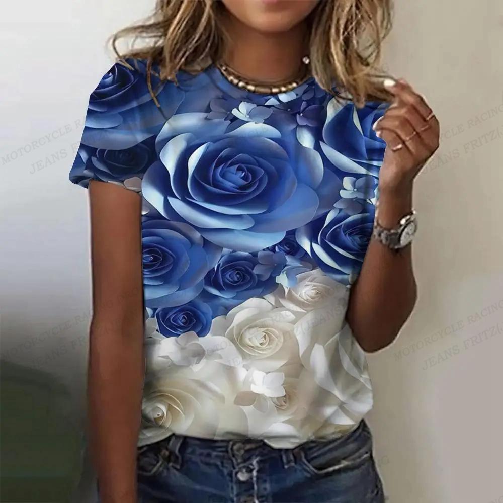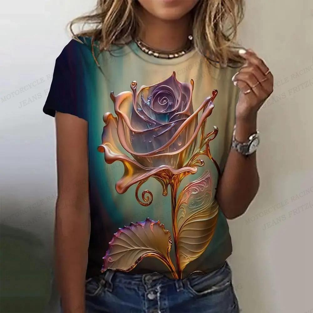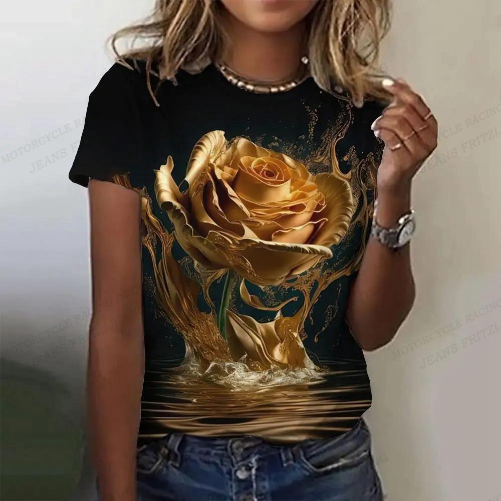 Летняя женская футболка с принтом Golden Rose 3D, женская модная футболка с круглым вырезом и коротким рукавом, цветочные топы, футболки Harajuku