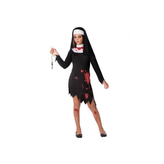 Déguisement enfant Nonne sanglante AC-DÉCO - 3 à 4 ans - Robe noire avec col et tâches de sang en polyester