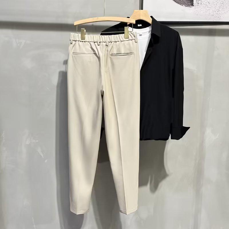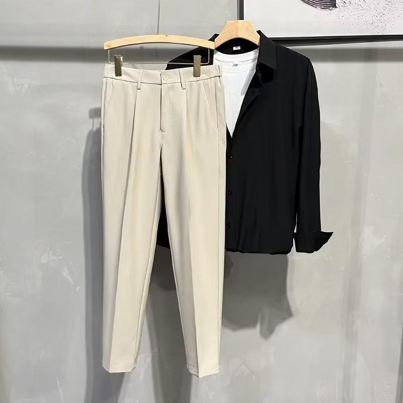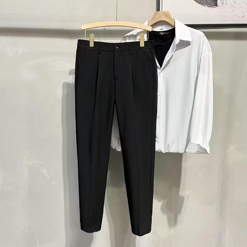 Мужские брюки прямого кроя в британском стиле с драпировкой, корейские зауженные брюки с девятью точками