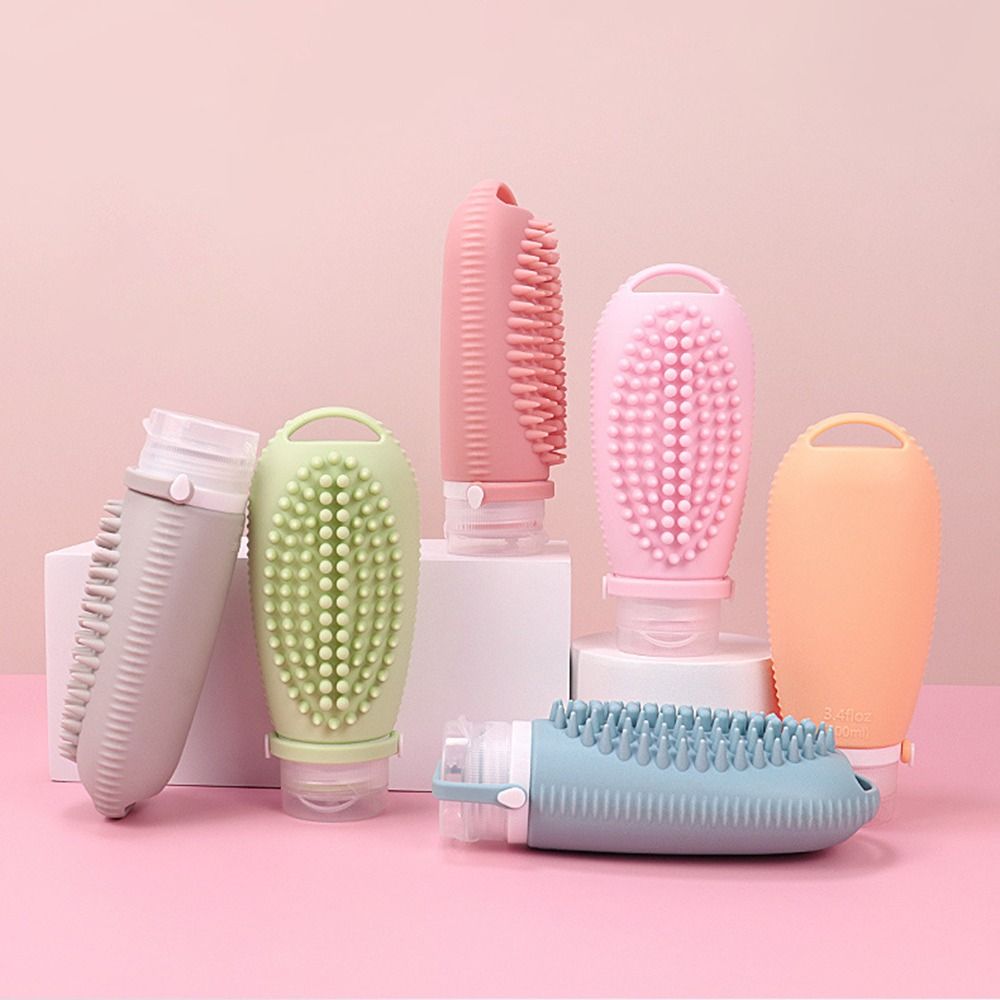 Заправляемая бутылка силиконовая массажная щетка удобная для путешествий дорожная бутылка для шампуня для женщин