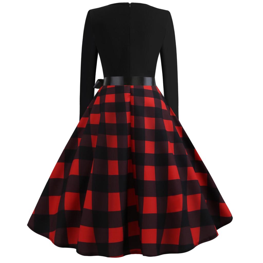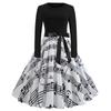 Платье в стиле ретро с длинными рукавами и круглым вырезом с цифровым принтом