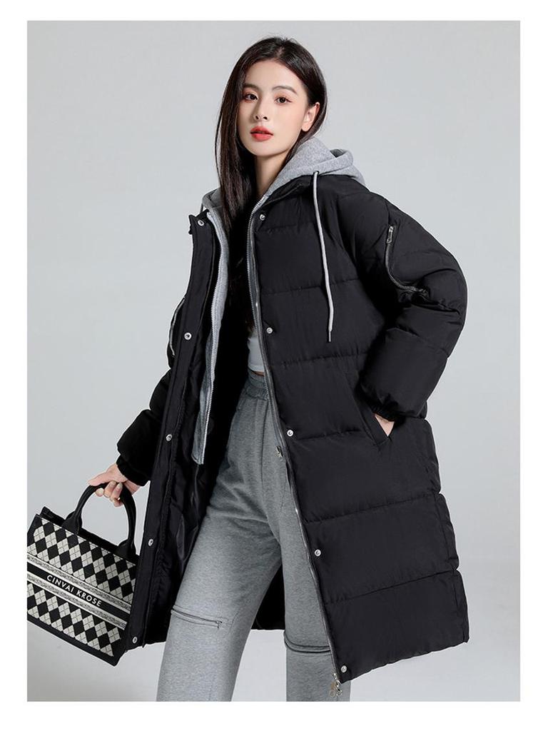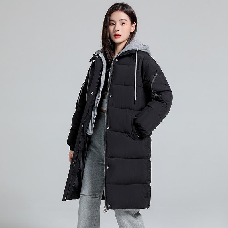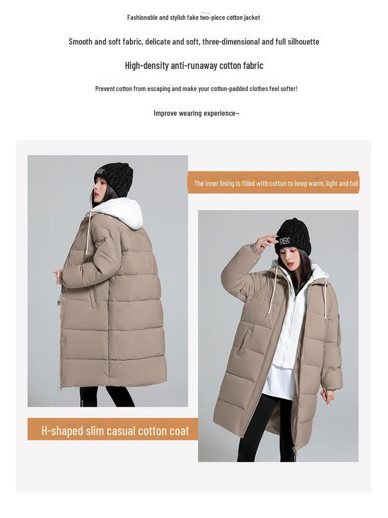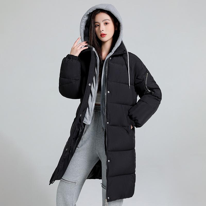 Оставайтесь стильными и в тепле этой осенью и зимой с этой женской повседневной хлопковой курткой средней длины.. Созданный для максимального комфорта, он имеет уникальную имитацию двухкомпонентной конструкции, которая доходит до колена, обеспечивая дополнительную защиту.. Куртка утеплена пуховым хлопковым наполнителем, что идеально подходит для сохранения тепла в прохладные дни.. Изготовлен из прочного полиэстера, имеет капюшон для дополнительной защиты от непогоды.. Сплошной узор и длинные рукава придают изделию классический, универсальный вид, а свободный крой обеспечивает свободу движений и возможность многослойного ношения.. Идеально подходит для тех, кто хочет совместить практичность и шикарный внешний вид верхней одежды.