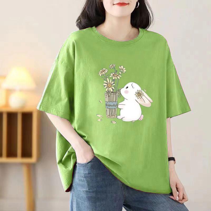 2024 Девушка Женщины Мультфильм Футболка Милые Футболки Хлопок Короткий Рукав Принт Топы