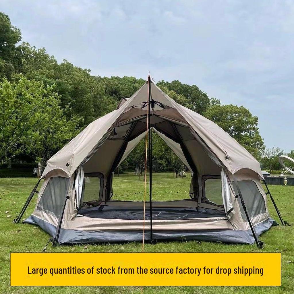 Автоматическая переносная шестиугольная палатка на 5-8 человек - двухслойная палатка для кемпинга на открытом воздухе