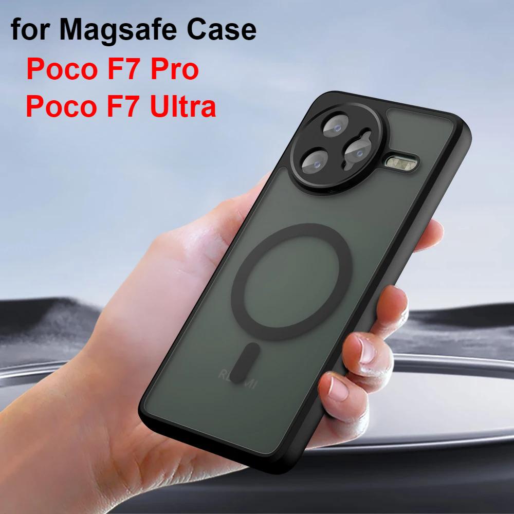 Чехол для POCO F7 Ultra Magsafe Magnetic Shockproof Matte Phone Cover для POCO F7 Pro Wireless Charging Hard Bumper Cases