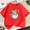 Футболка для девочек из 100% хлопка с изображением кошек, детская футболка с изображением животных, летняя футболка для детей с изображением кошек, милые и забавные детские футболки, топы 2023
