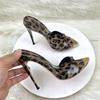 Новые дизайнерские женские туфли на высоком каблуке с открытым носком из металла 12 см, летние босоножки с леопардовым принтом, туфли на шпильке, размер 46