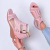Летние женские босоножки на танкетке с открытым носком, модные однотонные женские босоножки с пряжкой и ремешком, римские сандалии на платформе