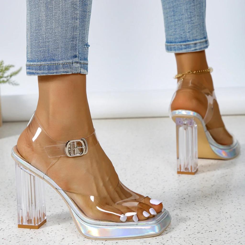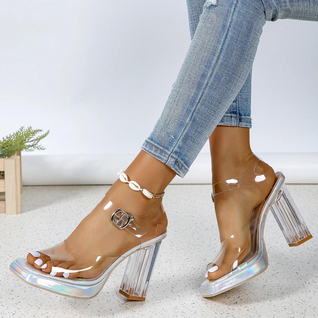 Летние новые прозрачные босоножки на высоком каблуке, повседневные модные толстые каблуки с прямой пряжкой, удобные босоножки на высоком каблуке для женщин
