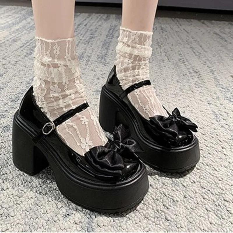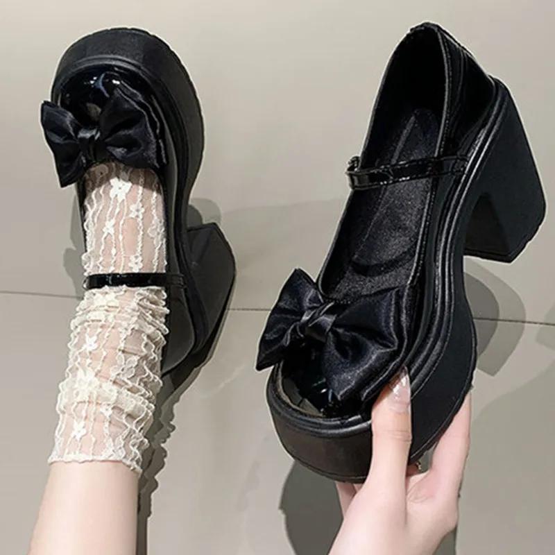 Новые удобные туфли Мэри Джейн на толстой подошве с высоким каблуком, повседневные студенческие спортивные туфли с круглым носком, водонепроницаемые туфли на платформе