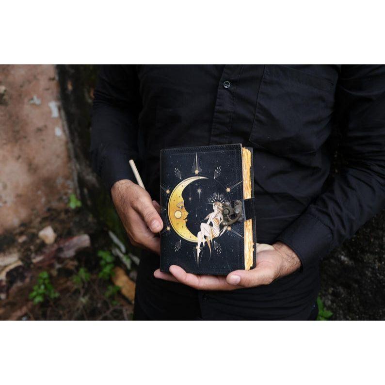 Солнце и луна Кожаный блокнот ручной работы Бумага с необрезанным краем, Пустой журнал теней для заклинаний, подарок для него, книга для путешествий. ( 100 страниц )