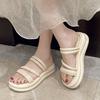 Женские босоножки на высокой платформе, туфли-лодочки на танкетке, повседневные сандалии-гладиаторы на толстой подошве, летние кожаные пляжные тапочки