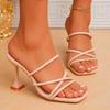 Женская обувь больших размеров с открытым носком, женские тапочки, модные туфли, женские узкие туфли с квадратным носком и высоким каблуком, современная обувь