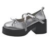Новые Модные и Универсальные - Однотонные Женские Туфли Круглый Носок Толстый Каблук Декорированные Бантом Ремешок с Пряжкой