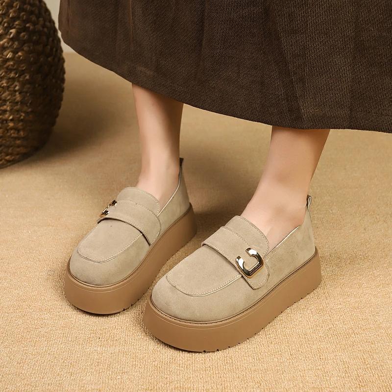 Уличная обувь Женские мокасины Женские туфли на высоком каблуке Повседневные туфли-лодочки на платформе Женские металлические украшения Слипоны Швейные туфли Женские