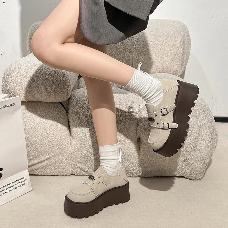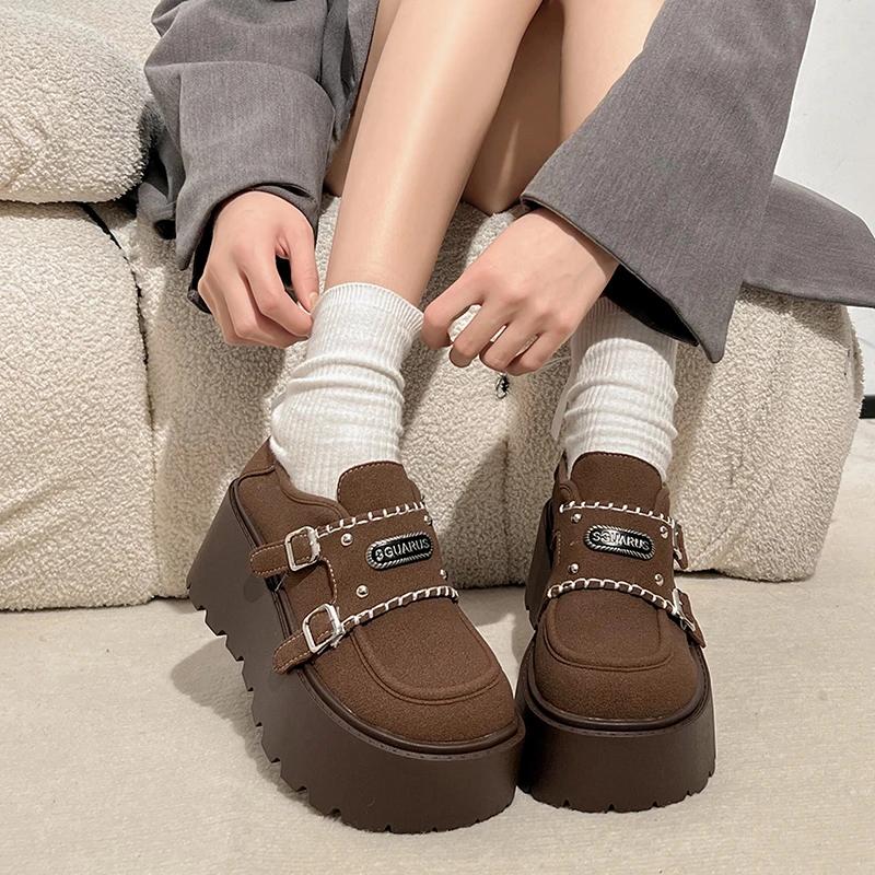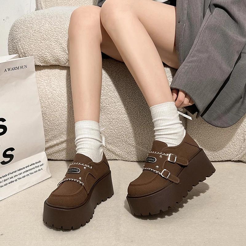 Женская обувь Брендовая пряжка на ремне Женские туфли на высоком каблуке с круглым носком Повседневные туфли-лодочки Женские новые однотонные туфли на платформе Каблуки Zapatos