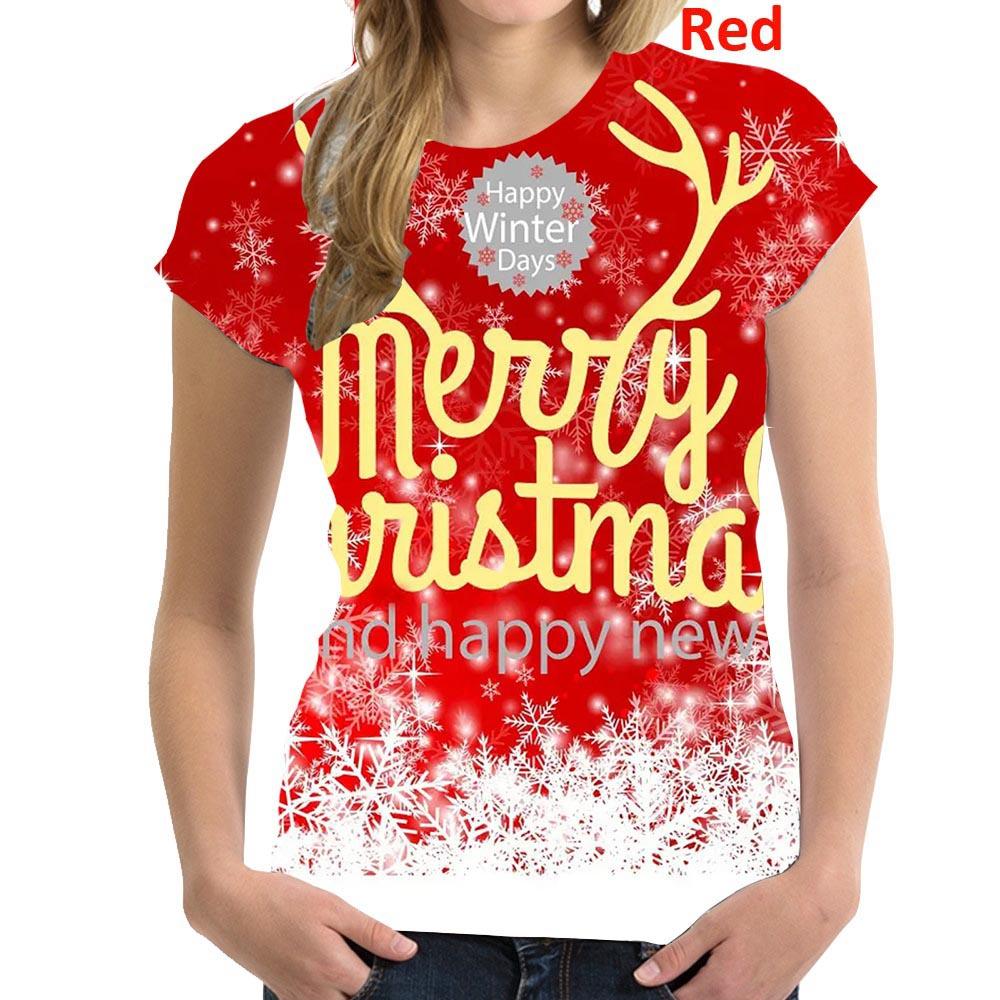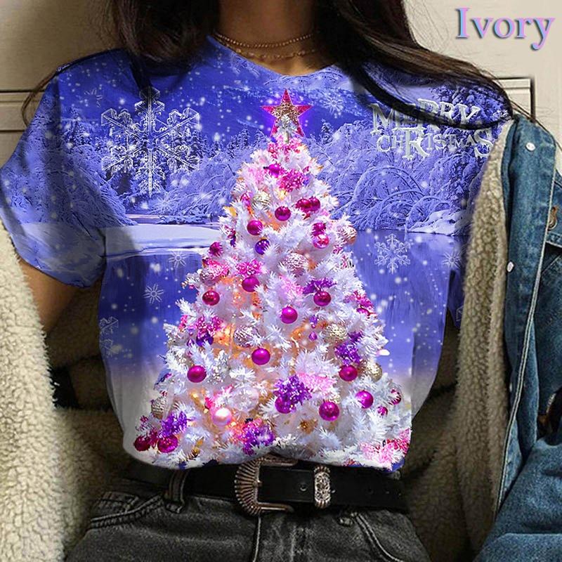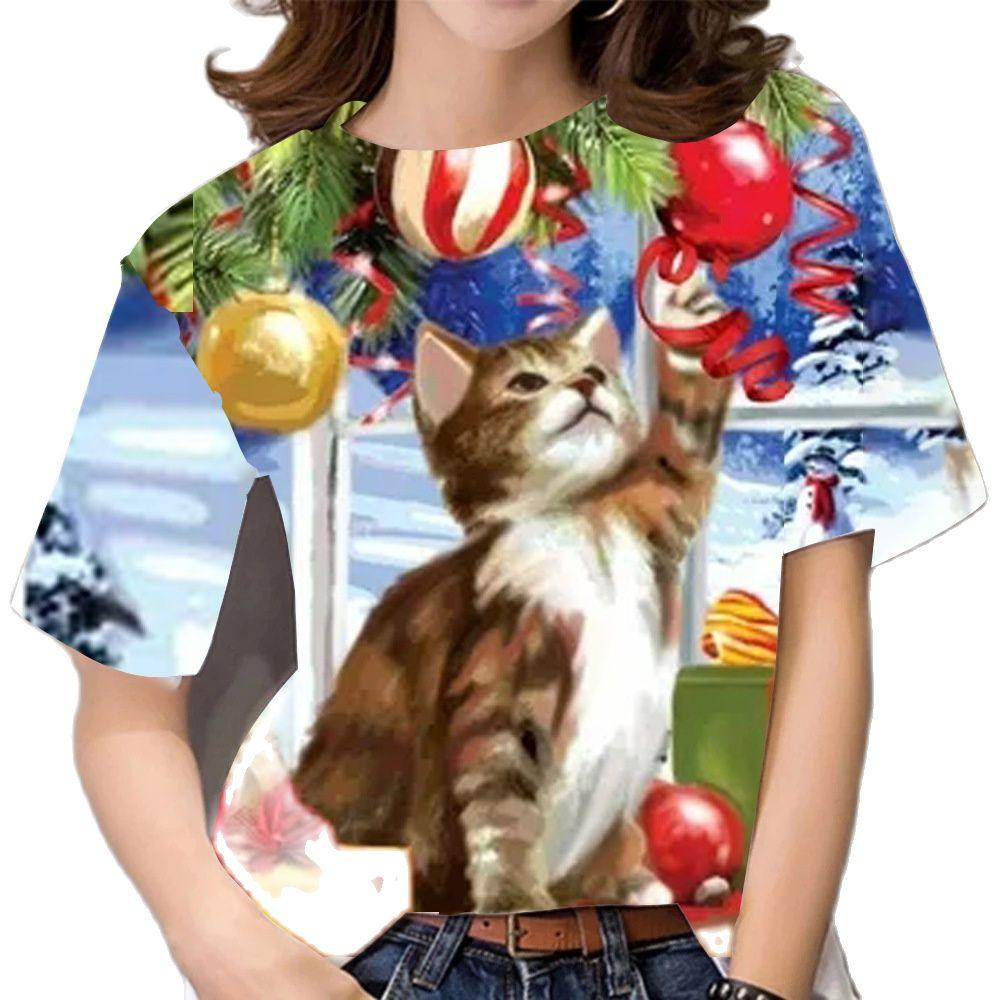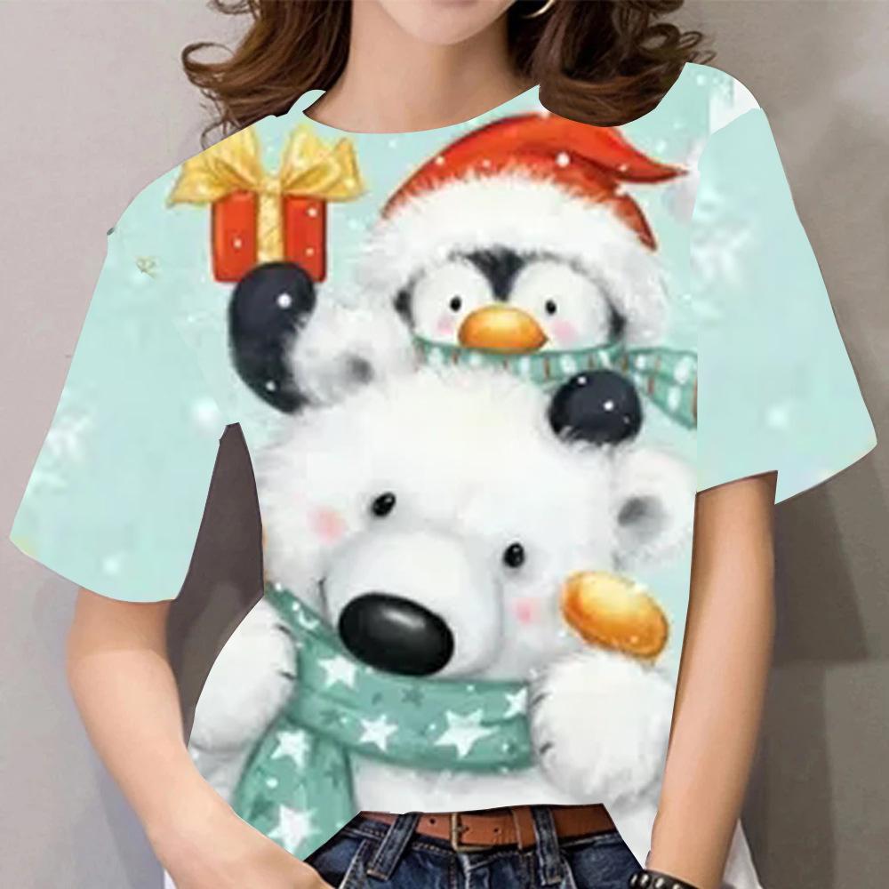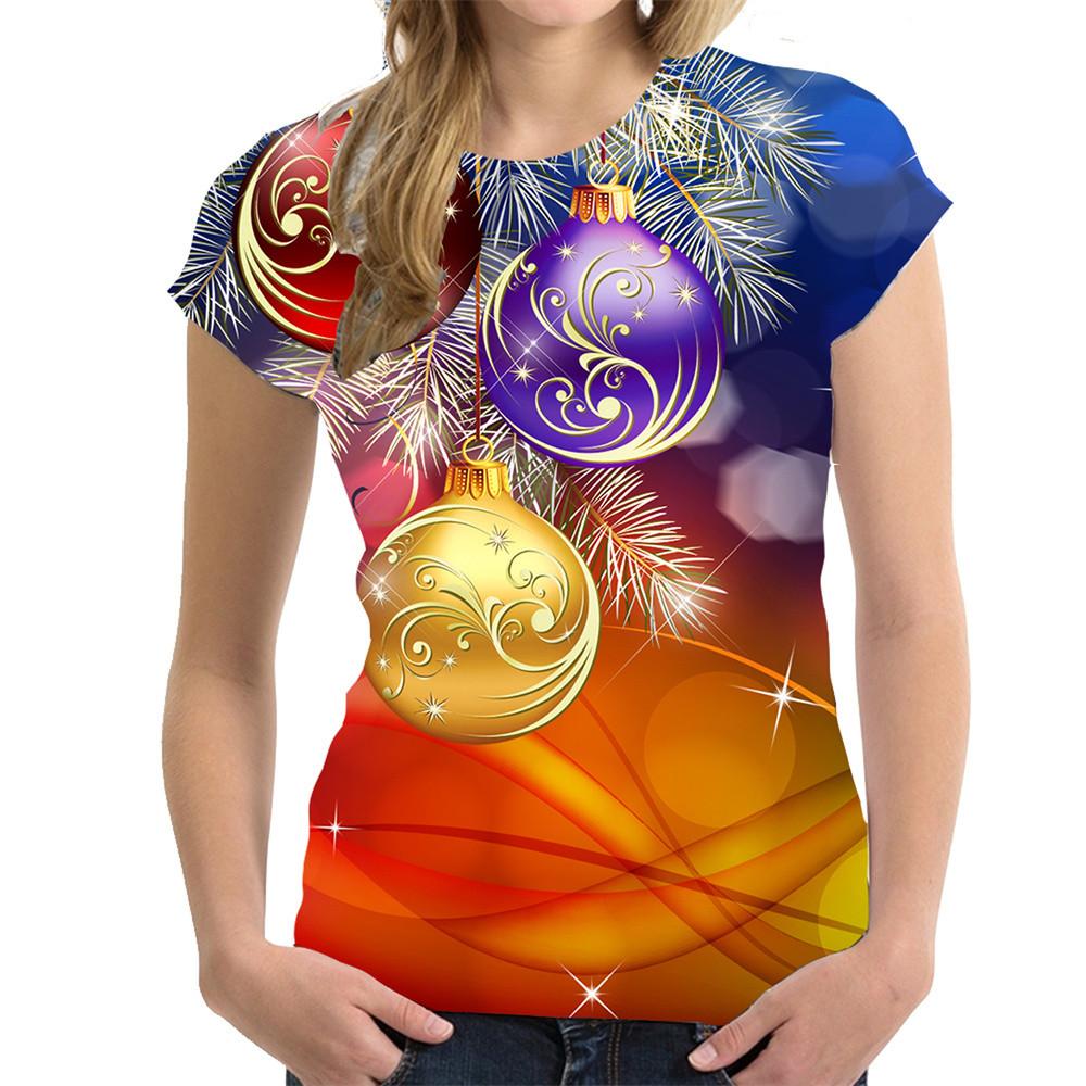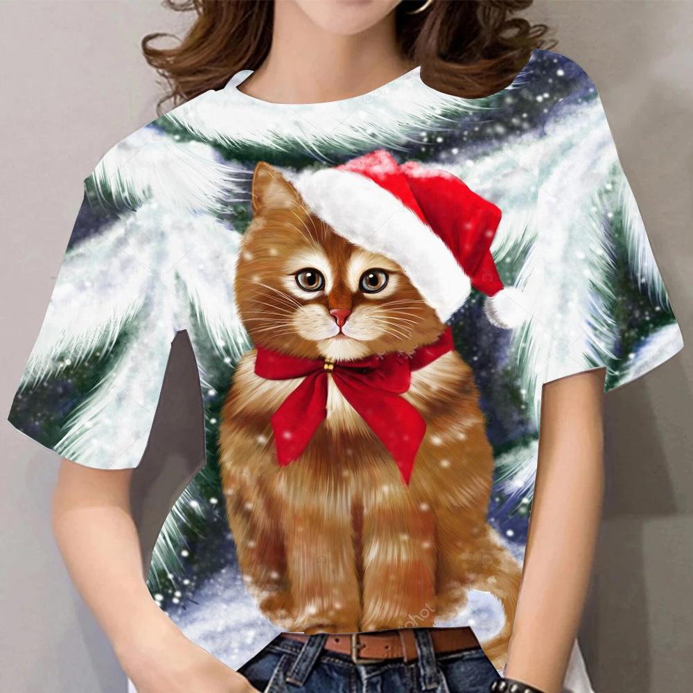 Летний топ с круглым вырезом и 3D рождественским принтом, модные повседневные женские футболки с короткими рукавами