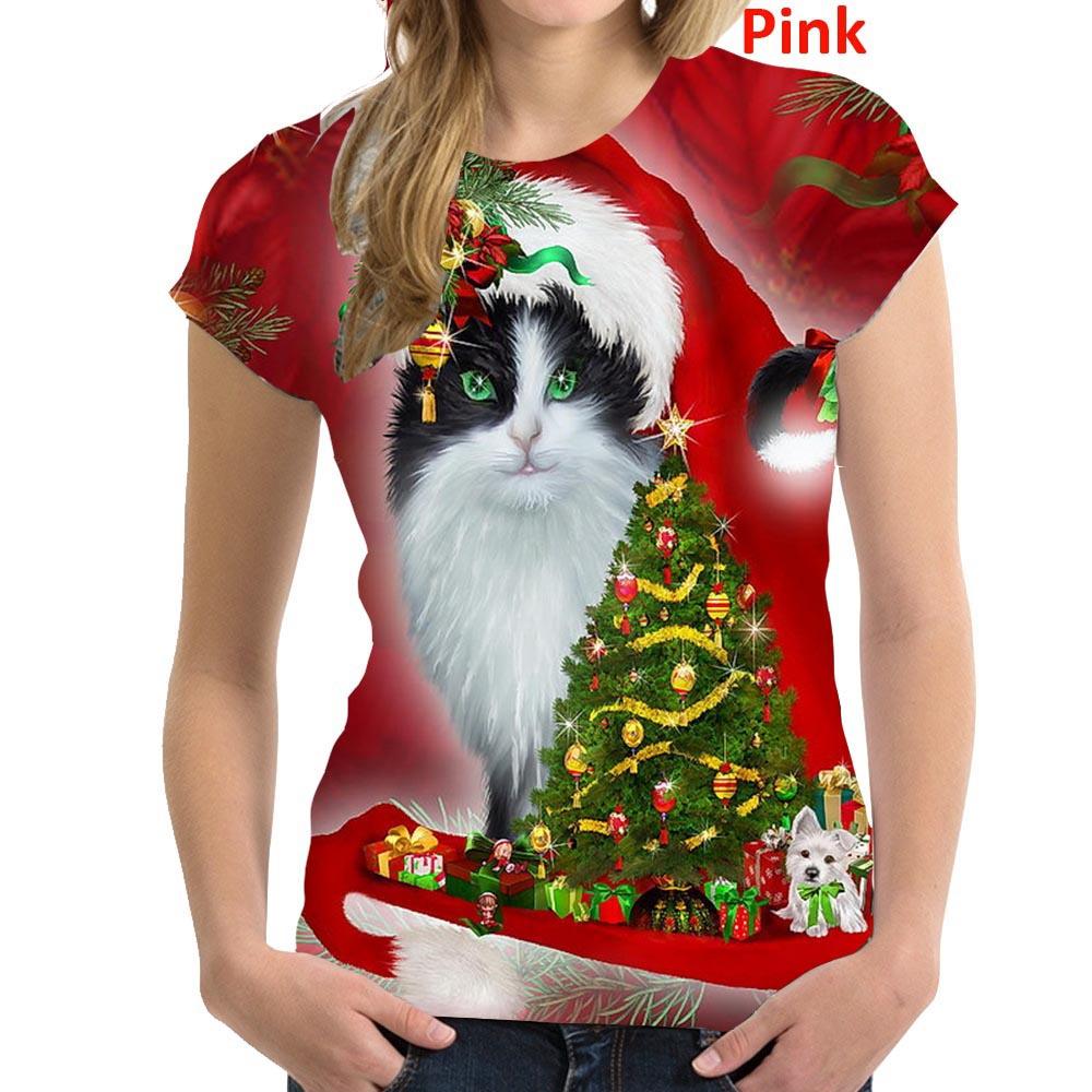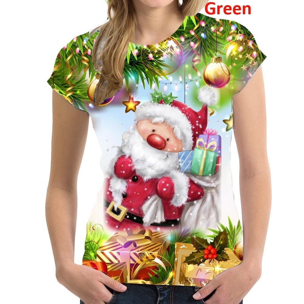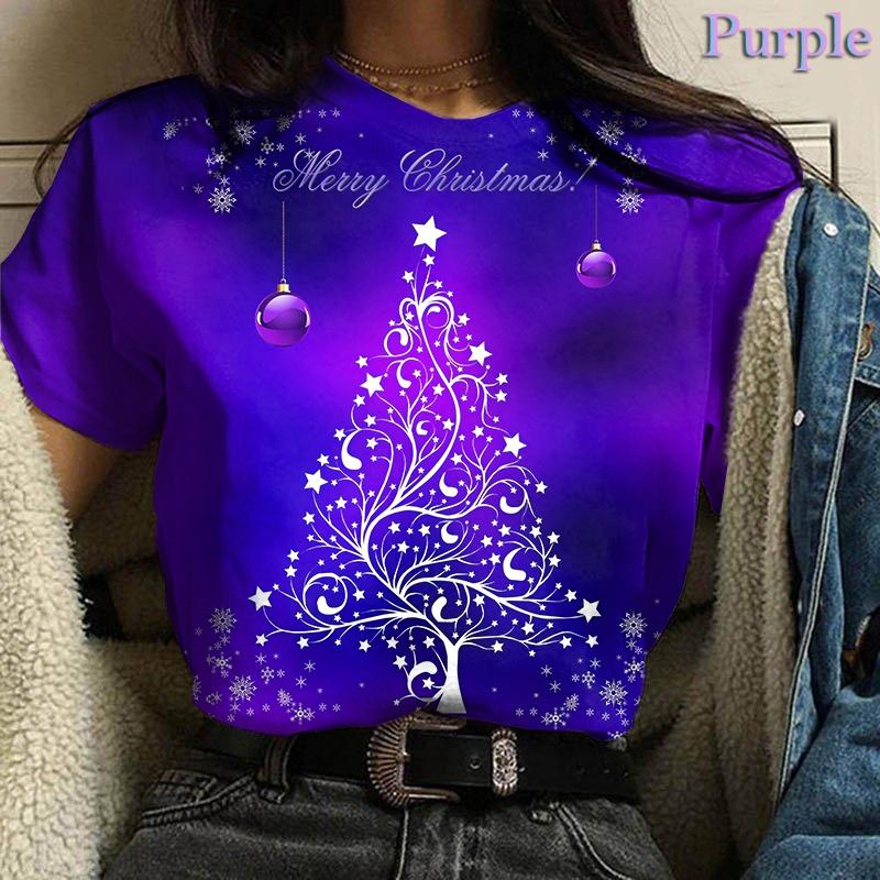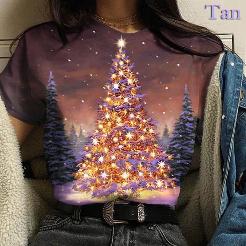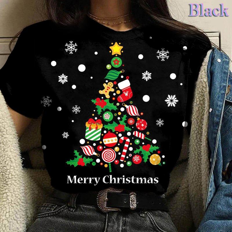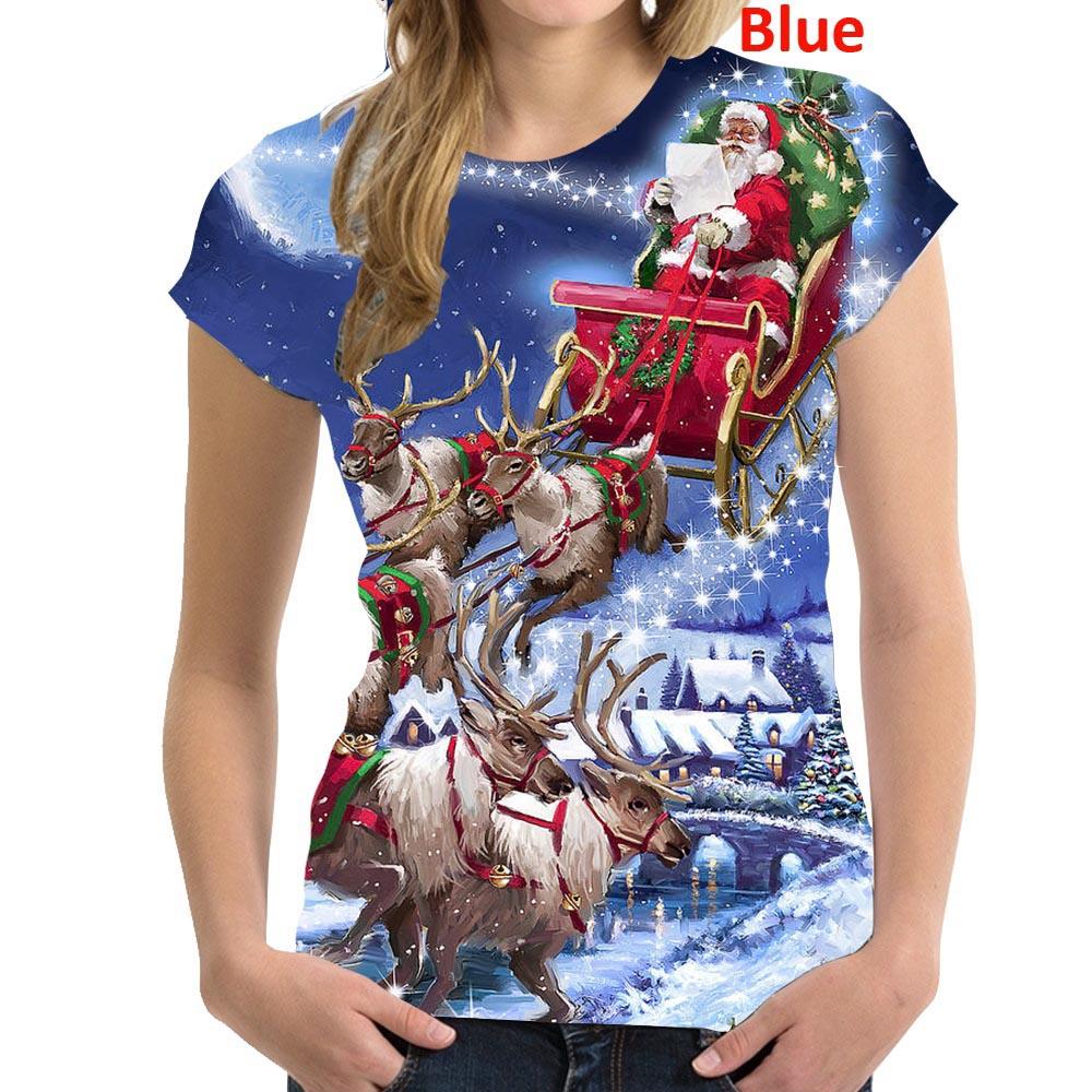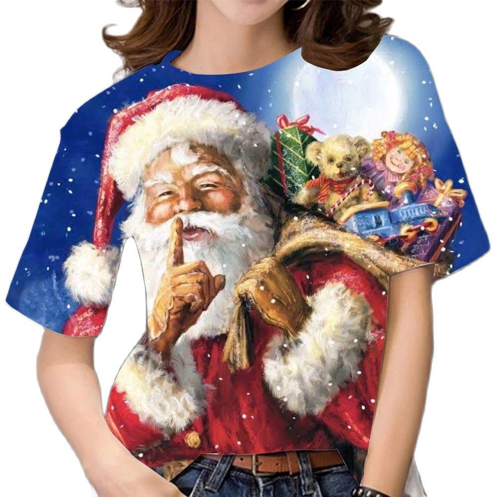 Летний топ с круглым вырезом и 3D рождественским принтом, модные повседневные женские футболки с короткими рукавами