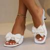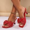 Женские тапочки, роскошные, украшенные стразами, банты для улицы, элегантные, однотонные, вечерние, на высоком каблуке, летние, новые женские тапочки
