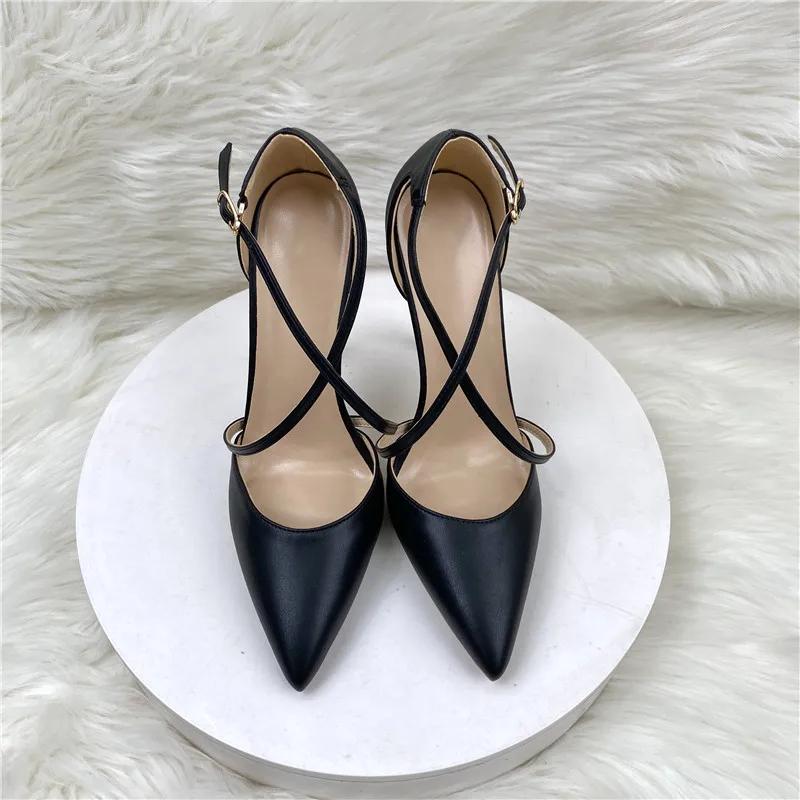 Новые удобные туфли на высоком каблуке с острым носком и плоским ремешком для женщин, тонкие каблуки с перекрестными ремешками, лакированные кожаные сандалии