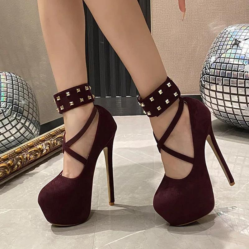 Новый дизайн заклепки платформы женские туфли-лодочки уличный стиль круглый носок шпилька высокие каблуки стриптизерша вечеринка женская обувь Zapatos De Mujer — купить товар онлайн с бесплатной доставкой по всему миру!