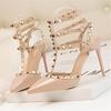 Летние роскошные женские туфли на остром каблуке с острым носком, модные тонкие туфли телесного цвета, брендовые дизайнерские сексуальные босоножки на каблуках для женщин