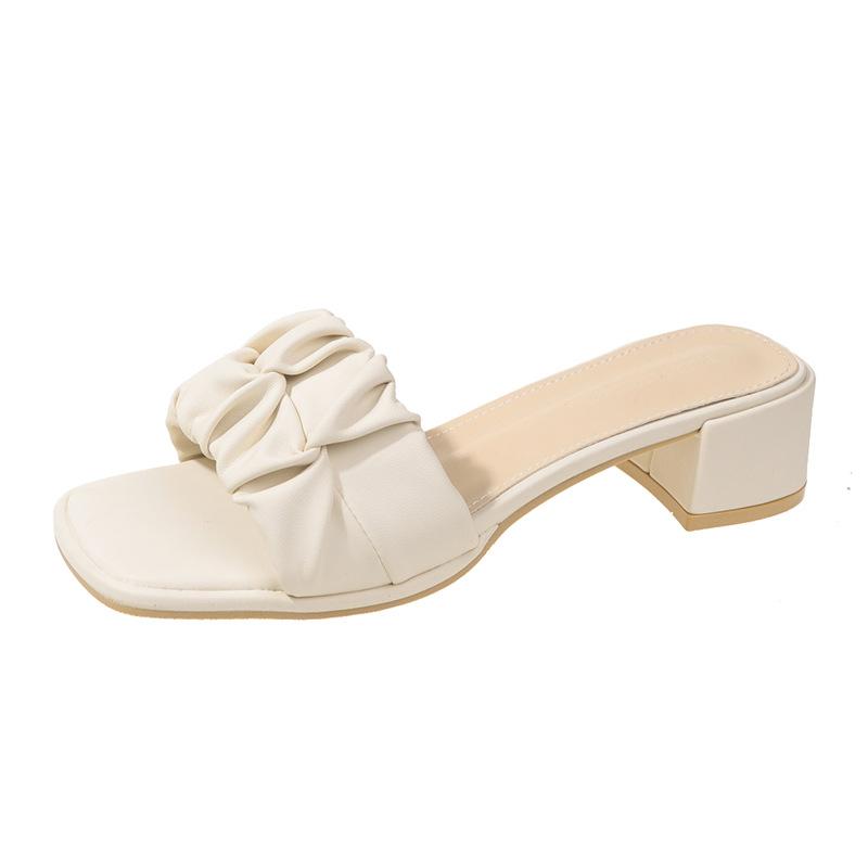 Обувь Женские тапочки Тапочки на квадратном каблуке Женские роскошные шлепанцы среднего размера Летние дизайнерские блочные дизайнерские римские скандалы PU Каблуки-копыта