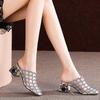 Женские тапочки, летние, новые, остроконечные, сетчатые, из рыбьей чешуи, Baotong Head Half Drag, повседневные, модные, дышащие, сандалии на квадратном каблуке